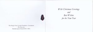 Borderers, Regimental Christmas cards are available from RHQ as shown it is the traditional “Dug and Bunnet” with diced ribbon. Please send your order by e mail to secretary@kosb.co.uk