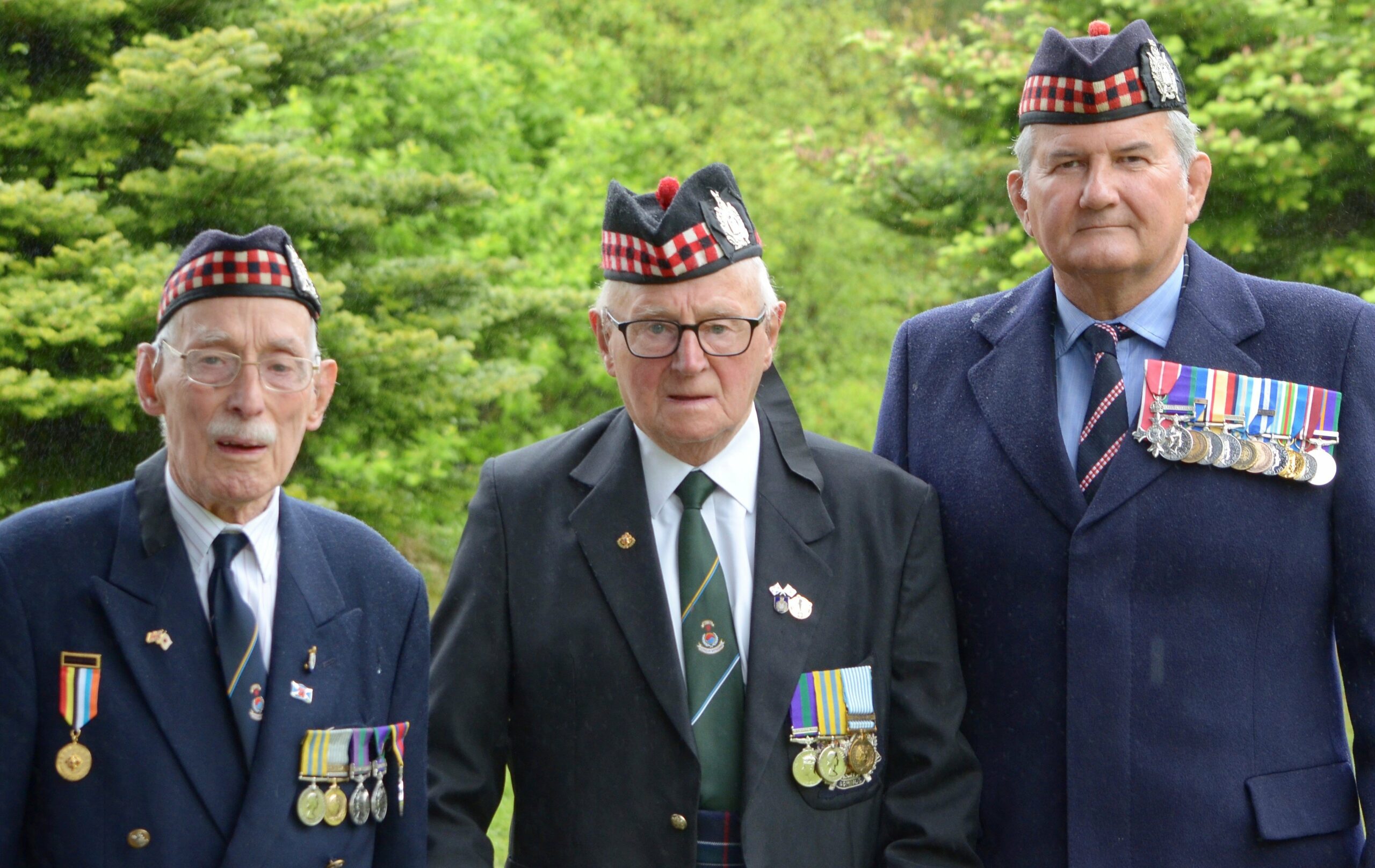 Korean veterans Allan Cameron and Gordon Couch with KOSB Association Vice Chairman Russell Combe