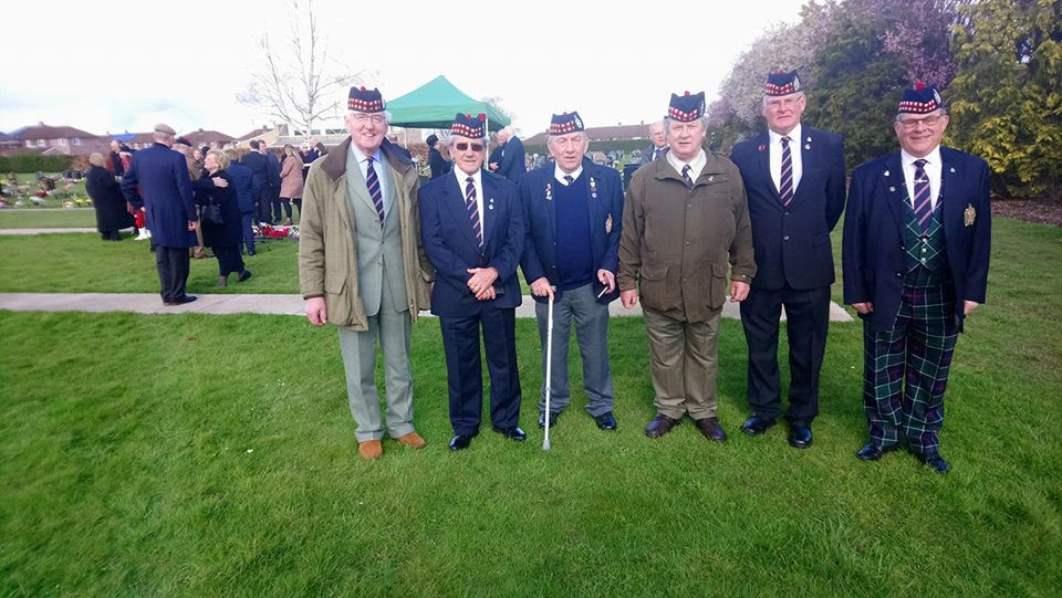 A group photo of the Borderer contingent was taken at the cemetery, showing (L to R) Dick Taylor, Cliff McVeigh, Derek McNeish, Andy Liddell, Ian Domingo and Bill McKenna. We then adjourned for refreshments, where another former Borderer, Lt Col Bill Mundell, reminisced about his National Service with the KOSB in Korea (C Coy, commanded by Maj Tommy Little and then Maj Richard Irvine), followed by joining the SAS in Malaya and serving with Bill Speakman VC and Bill Dover. He eventually became QM 22 SAS, stayed in the Hereford area on retirement and is still lean, ramrod straight and has an excellent memory!